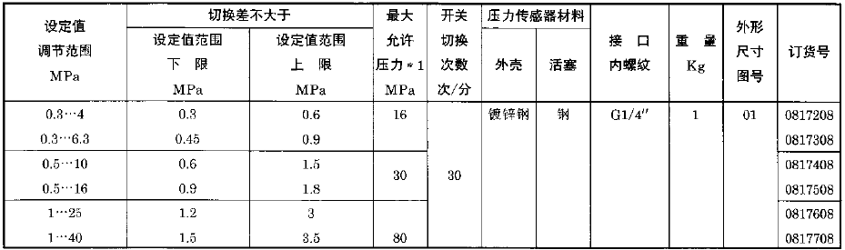 注:1.在實際工作中,即使短暫的壓力峰值也不能超過此值;2.要求上切換值同步,應在訂貨中注明。