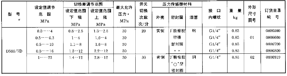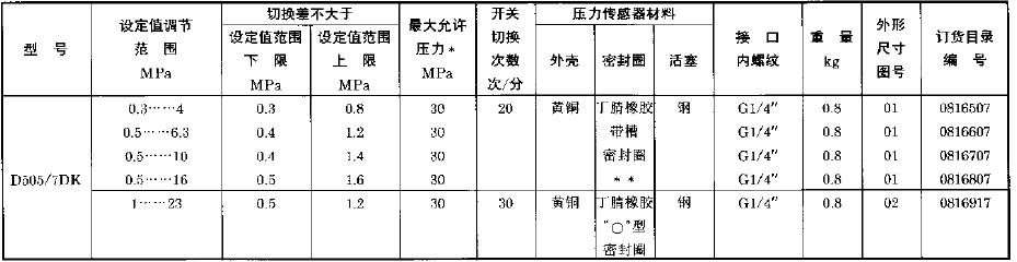 上海遠東儀表廠生產(chǎn)的D505系列壓力控制器采用無泄漏活塞式的傳感器,控制靈敏度高。可用于含油霧的壓宿空氣及其它對壓力傳感器材料無腐蝕作用的含油霧氣體和液壓油,水油乳蝕液及潤滑性能良好的中性液體介質(zhì)??刂破鞯脑O(shè)定值可調(diào),調(diào)節(jié)范圍0.3……23Mpa。
