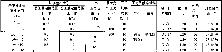 注:*)為高壓口的介質(zhì)壓力范圍;**)在實(shí)際工作中,二個(gè)壓力口介質(zhì)的短暫峰值壓力也不能超過(guò)此值。