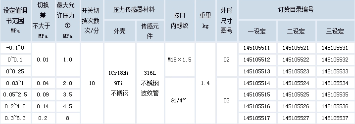 注:1.*表示在實(shí)際工作中,即使短暫的壓力峰值也不能超過此值;2.為使控制器能取得最佳效果,用戶在使用前應(yīng)模擬實(shí)際工況進(jìn)行調(diào)試;3技術(shù)性能符合企業(yè)標(biāo)準(zhǔn)Q/YXBM846-2002;4需二組及二組以上設(shè)定值控制的,需在訂購(gòu)時(shí)注明。