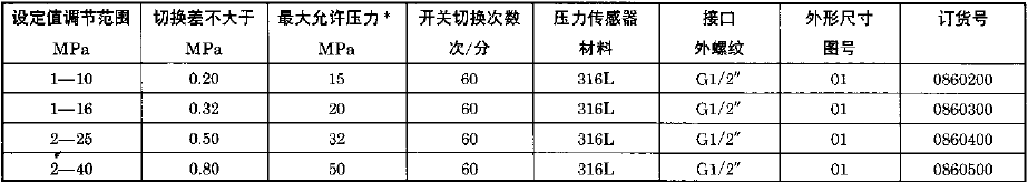 注:*表示在實際工作中,即使短暫的壓力峰值也不能超過此值。