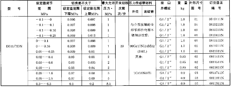 ◆D511/7DN切換差不可調(diào)壓力控制器
