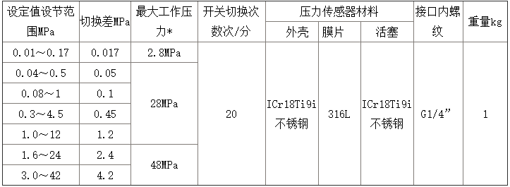 上海遠東儀表廠生產(chǎn)的YPK-500壓力控制器為直頂式結構方式,控制器采用膜片和活塞的組合形式,可用于中性氣體和液體介質,控制器的設定值可調,調節(jié)范圍0.02……42MPa,切換差為不可調。