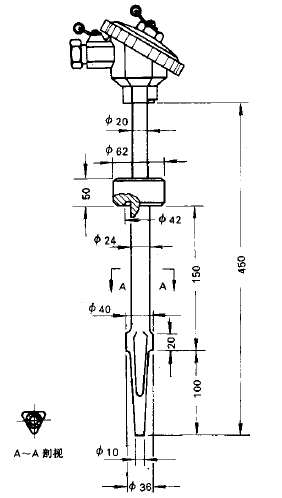 ◆保護管材料:1Cr18Ni9Ti(可選用其它材料)
