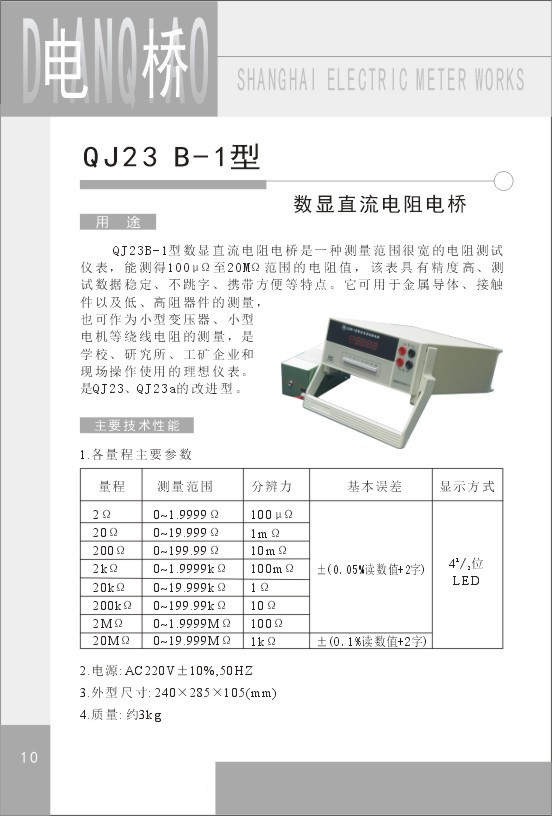QJ23B-1數(shù)顯電阻電橋(上海電工儀器廠)