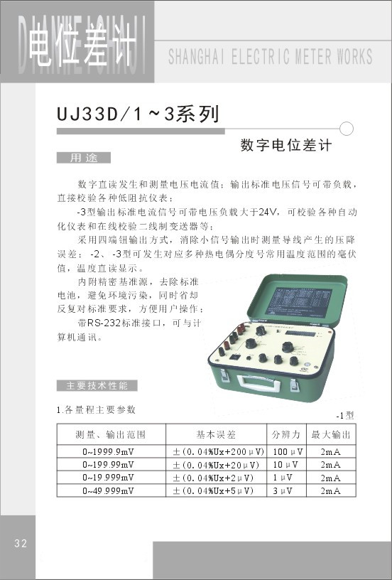 UJ33D-3數(shù)顯電位差計(上海電工儀器廠)