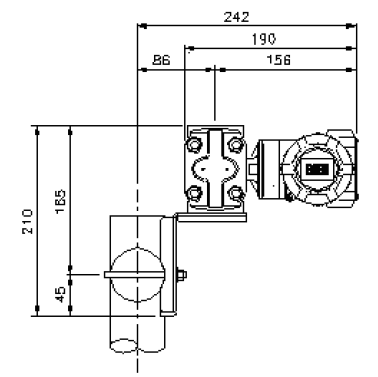 變送器垂直安裝于2-英寸管道上的支架,碳鋼結(jié)構(gòu),配有碳鋼U型螺栓,聚氨酯噴漆