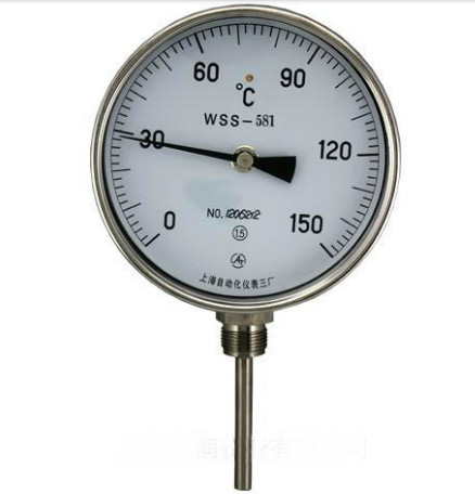 上海自動(dòng)化儀表三廠生產(chǎn)的WSS系列萬(wàn)向型雙金屬溫度計(jì)是用于測(cè)量中、低溫的現(xiàn)場(chǎng)檢測(cè)儀表,它具有易讀數(shù),安全可靠,使用壽命長(zhǎng)等優(yōu)點(diǎn),可以直接測(cè)量工業(yè)生產(chǎn)過程中-80℃~600℃范圍內(nèi)的液體、氣體和蒸汽等介質(zhì)的溫度。