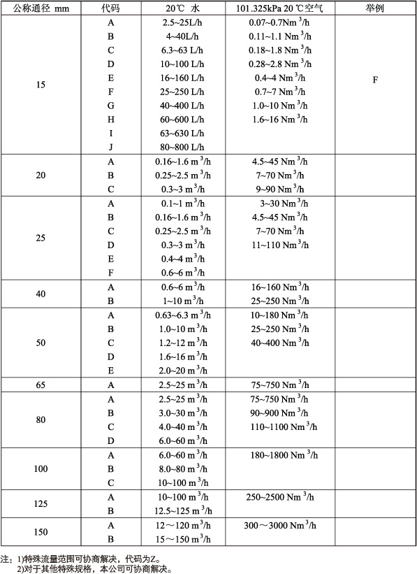 LZ-25A0B6A0D0表示金屬管轉子流量計,口徑DN25mm,流體方向下進上出,浮子材質304,壓力PN2.5,精度2.0級,大開面指針式,無阻尼,流量0.3~3m3/h的液體。