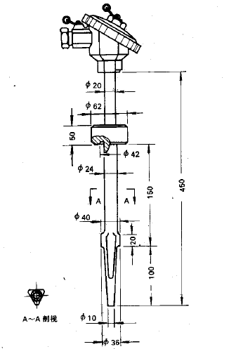 上海自儀三廠焊接固定錐形保護(hù)管式熱電偶