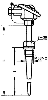 ◆固定螺紋錐形保護(hù)管防濺式裝配熱電阻